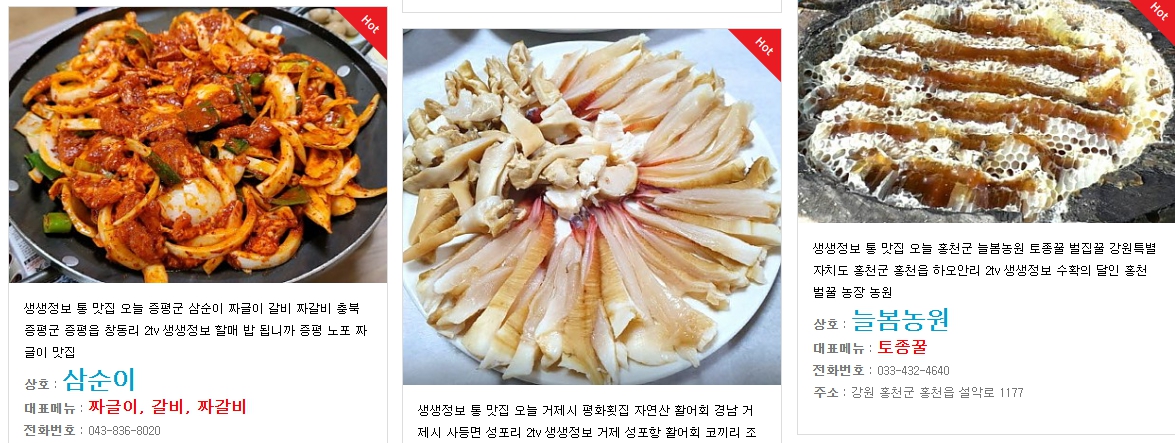 - “생생정보통 맛집 오늘방송” 검색